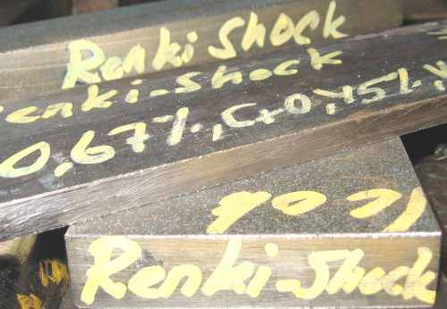 Renki-Shock has an unusual steel composition. Spring steel. Exceptionally tough steel. Easy heat treatment.